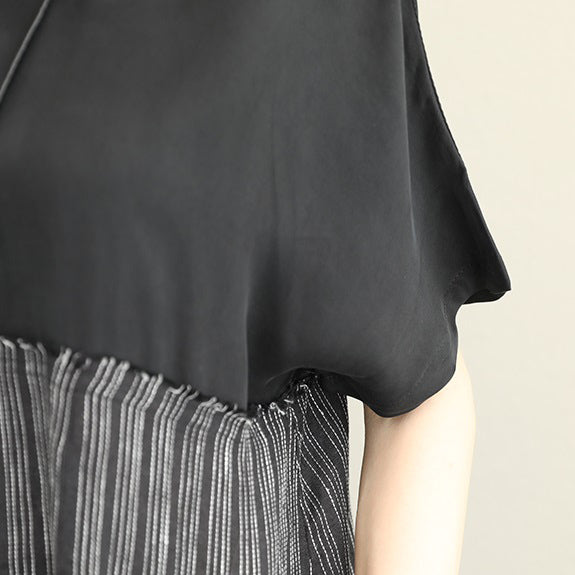 Fine gray long silk linen dress plus size patchwork linen gown fine short sleeve caftans