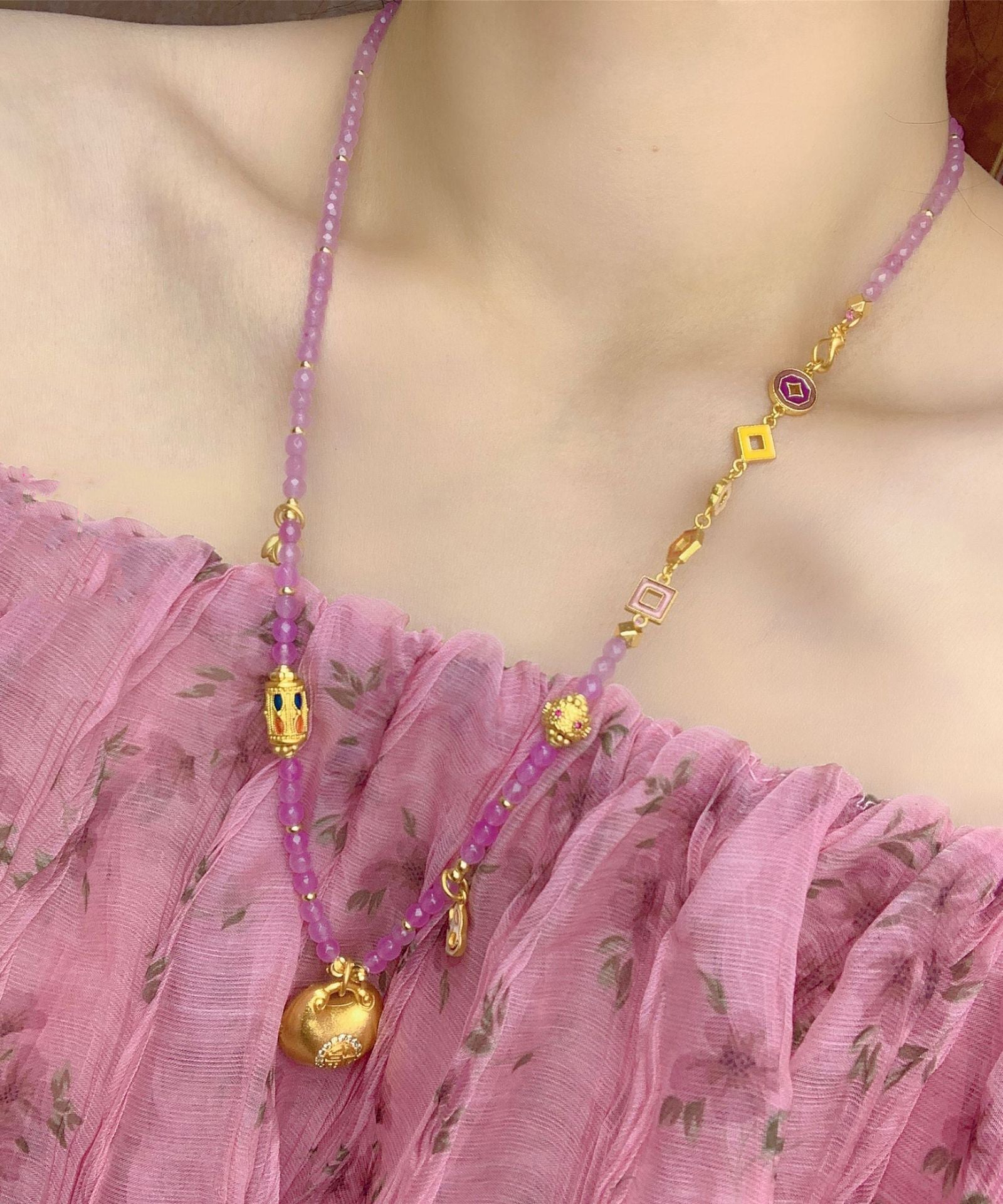 Fine Purple Ancient Gold Drip Glaze Sweater Pendant Necklace
