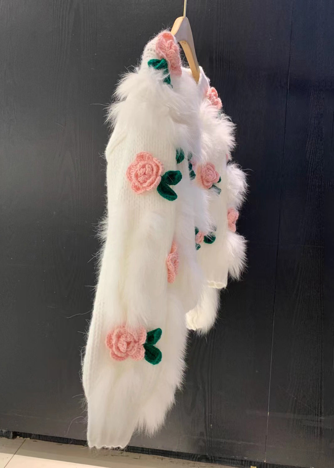 Floral Pink V Neck Button Patchwork Knit Cardigan Winter