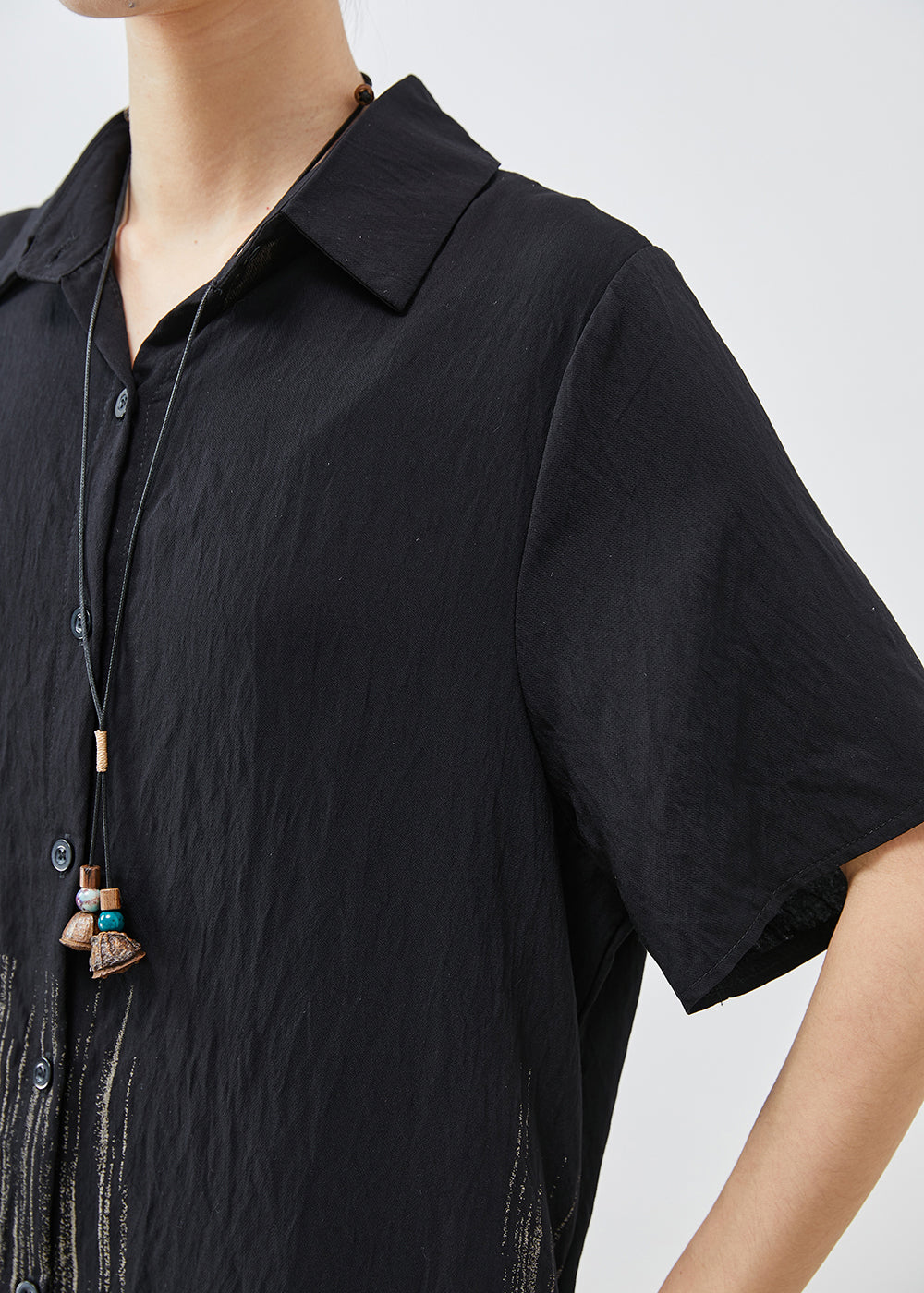 French Black Peter Pan Collar Print Cotton Shirt Dress Summer