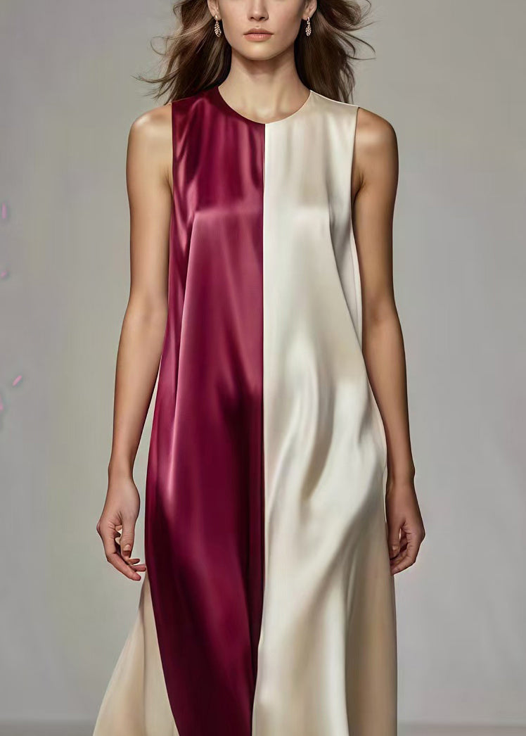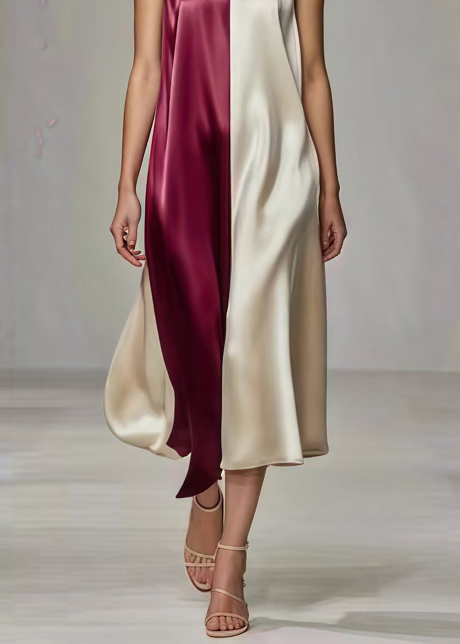 French Colorblock Oversized Patchwork Silk Long Dress Summer