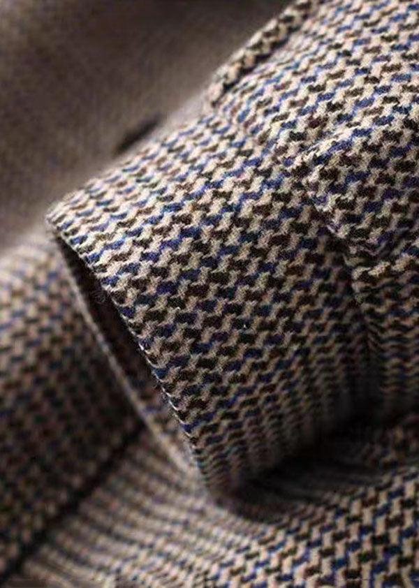 French Plaid Peter Pan Collar Pockets Patchwork Woolen Coats Fall