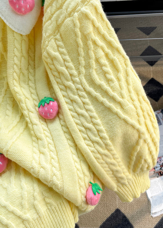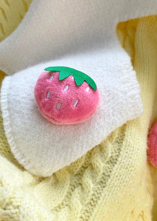 French Yellow Peter Pan Collar Strawberry Knit Sweaters Winter