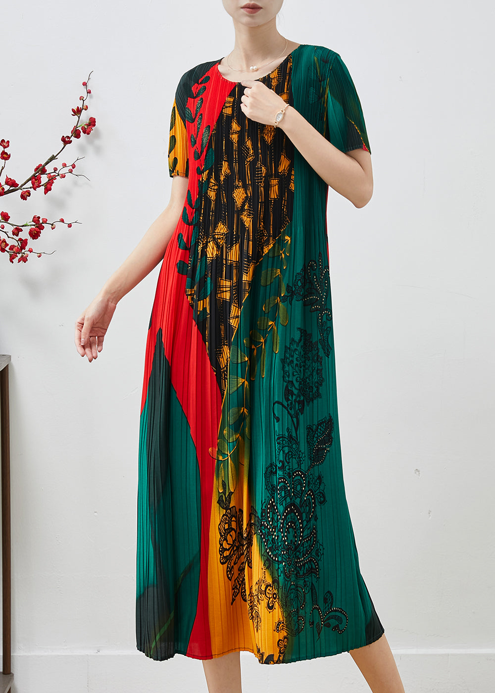 Green Print Chiffon Vacation Dresses Wrinkled Summer