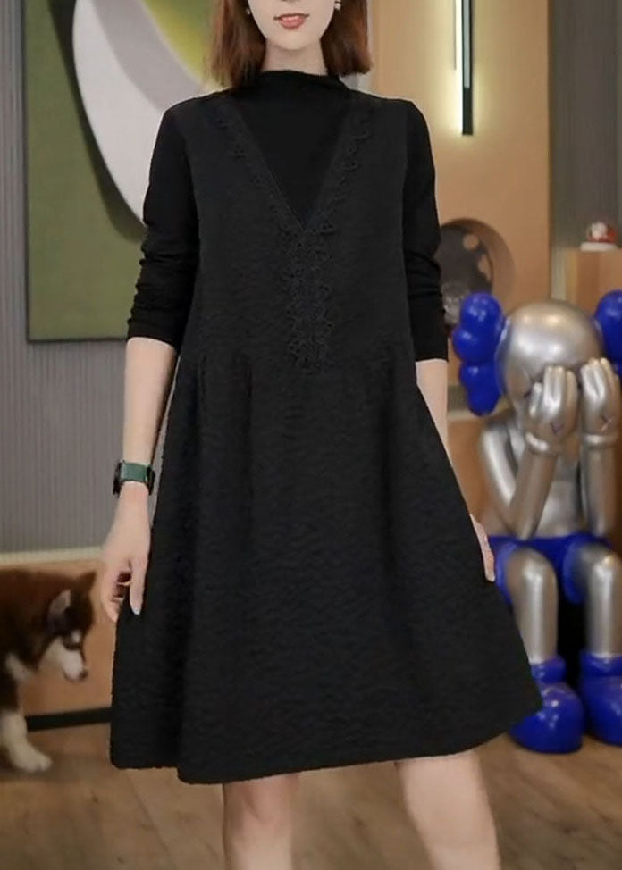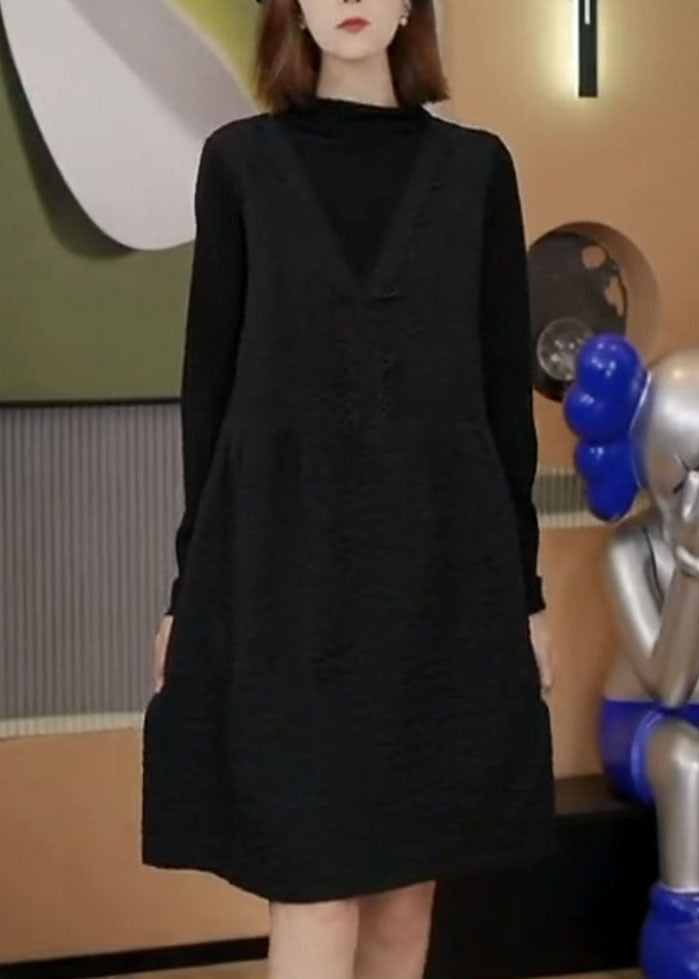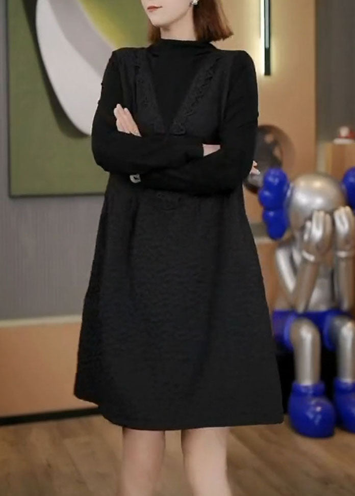 Handmade Coffee Print Patchwork Fake Two Pieces Mid Dresses Fall