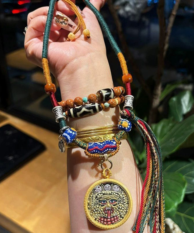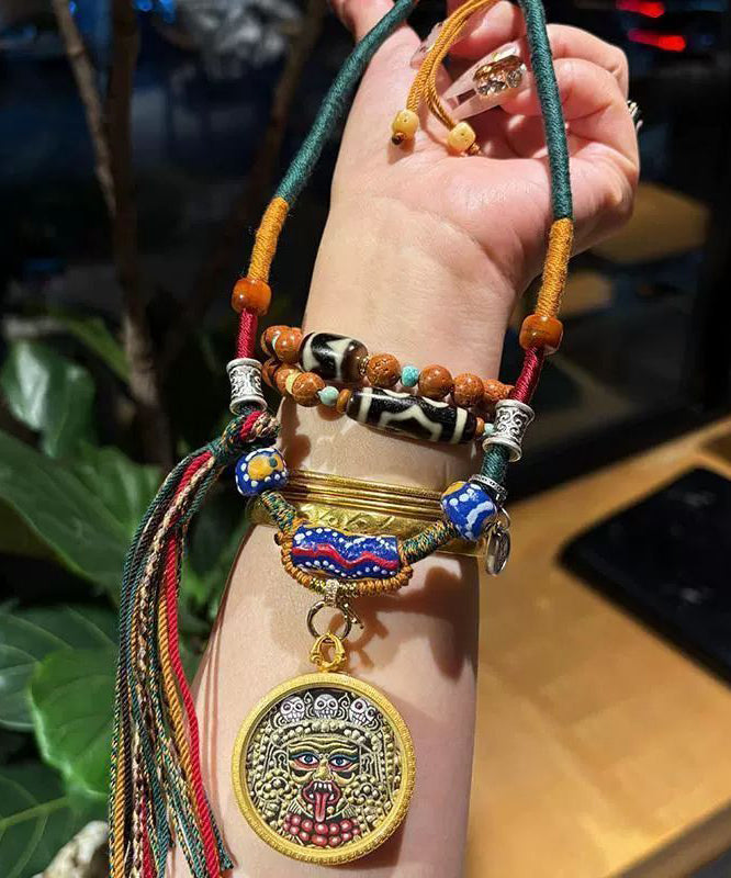 Handmade Multicolor Weave Colored Glaze Sweater Pendant Necklace