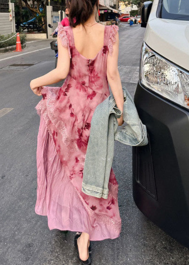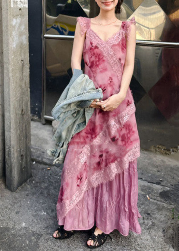 Holiday Style Orange Print V Neck Lace Patchwork Cotton Dresses Summer