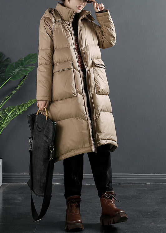 Italian Red Zip Up Pockets Hooded Duck Down Puffer Coat Winter