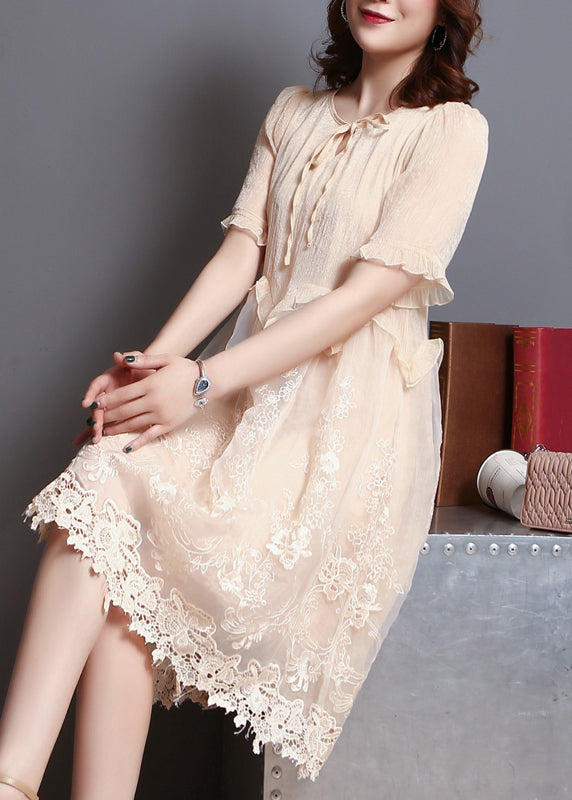 Italian Rose Embroidered Patchwork Silk Party Dress Summer
