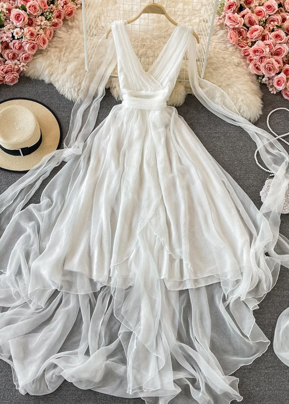 Italian Yellow V Neck Tunic Chiffon Maxi Beach Dress Short Sleeve