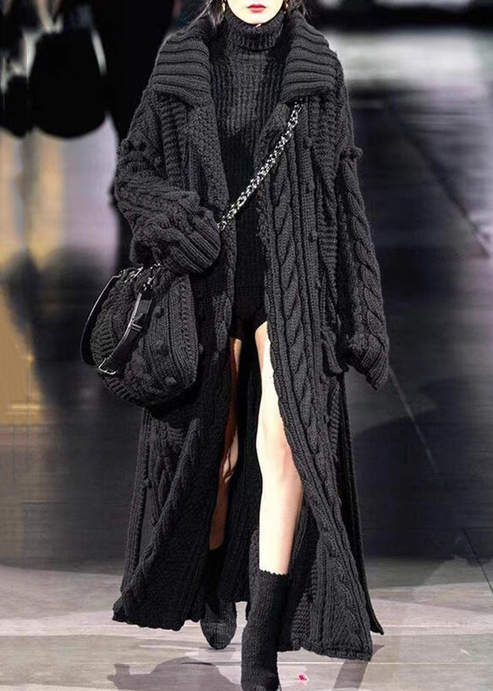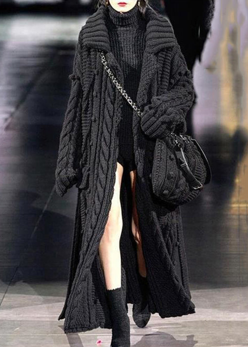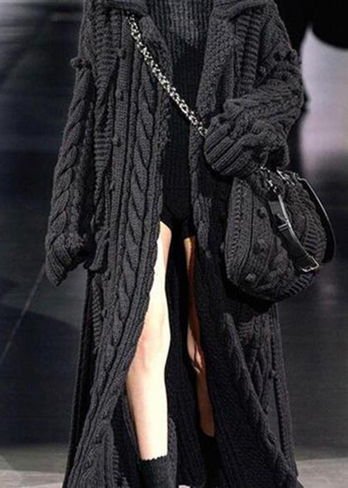 Loose Black Peter Pan Collar Patchwork Knit Cardigans Long Sleeve