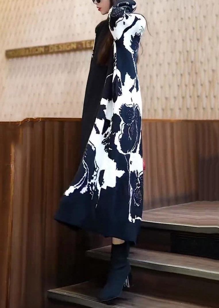 Loose Black V Neck Button Patchwork Knit Knit Sweater Maxi Coat Fall