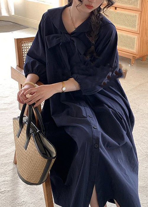 Loose Pink Lace Up Button Cotton Blouses Dress Long Sleeve