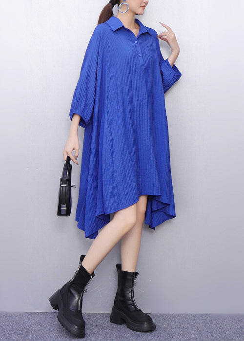 Magical Blue Peter Pan Collar Oversized Cotton Mid Dress Half Sleeve