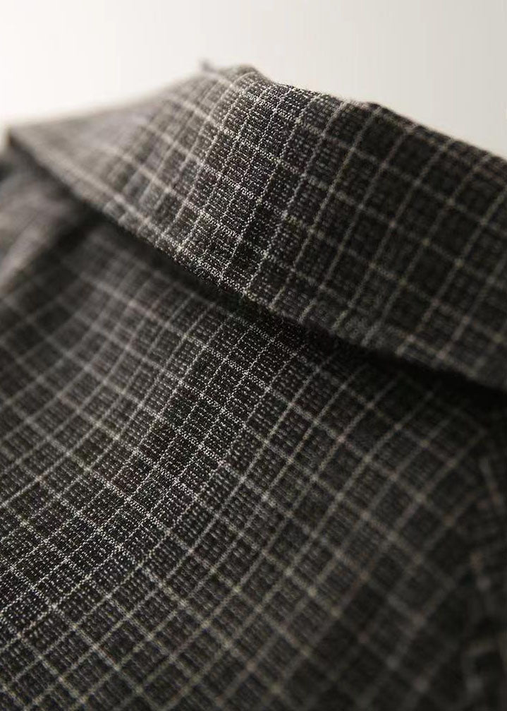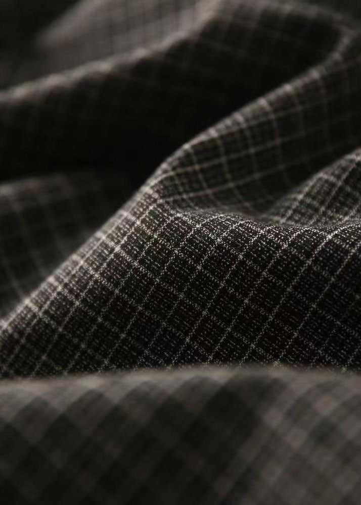 Modern Black Peter Pan Collar Plaid Drawstring Patchwork Cotton Jacket Fall