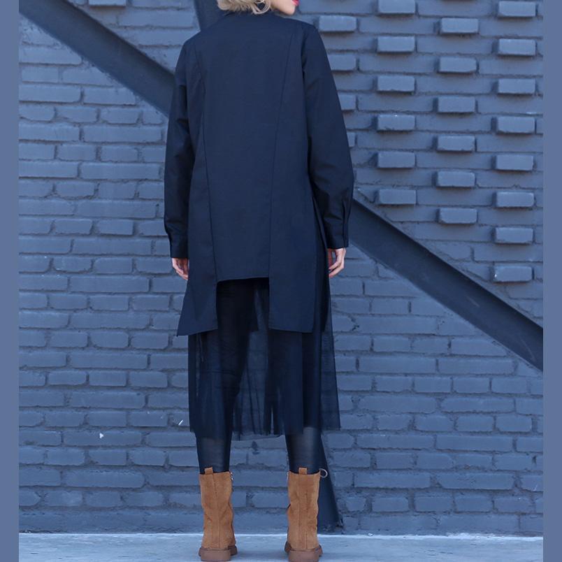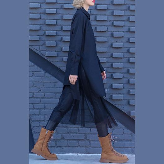 Modern Turn-down Collar Cotton clothes Pakistani pattern black shift Dress