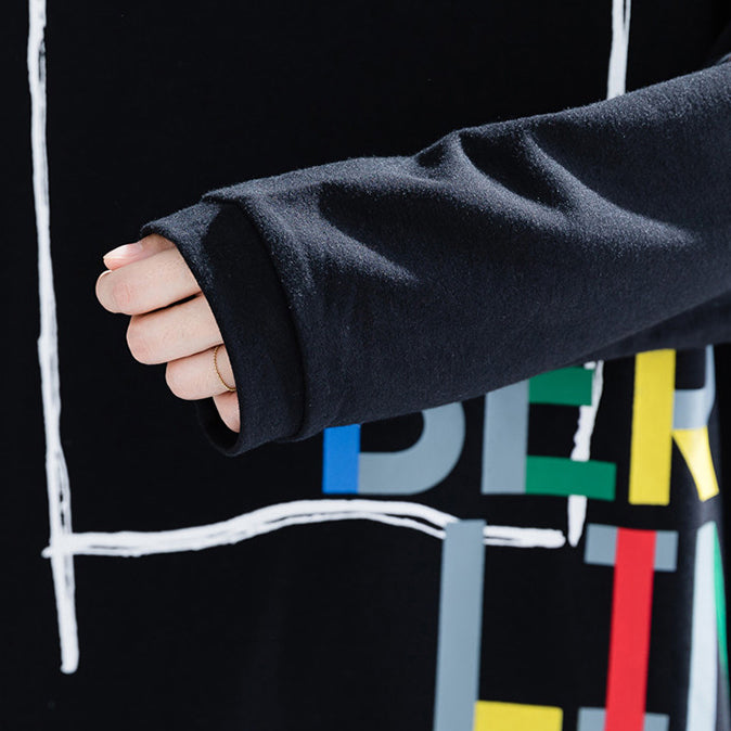 Natural black Cotton dresses Pakistani Wardrobes Letter short Dresses