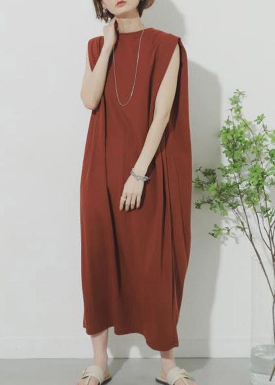 Natural Mulberry O-Neck Solid Maxi Dress Summer