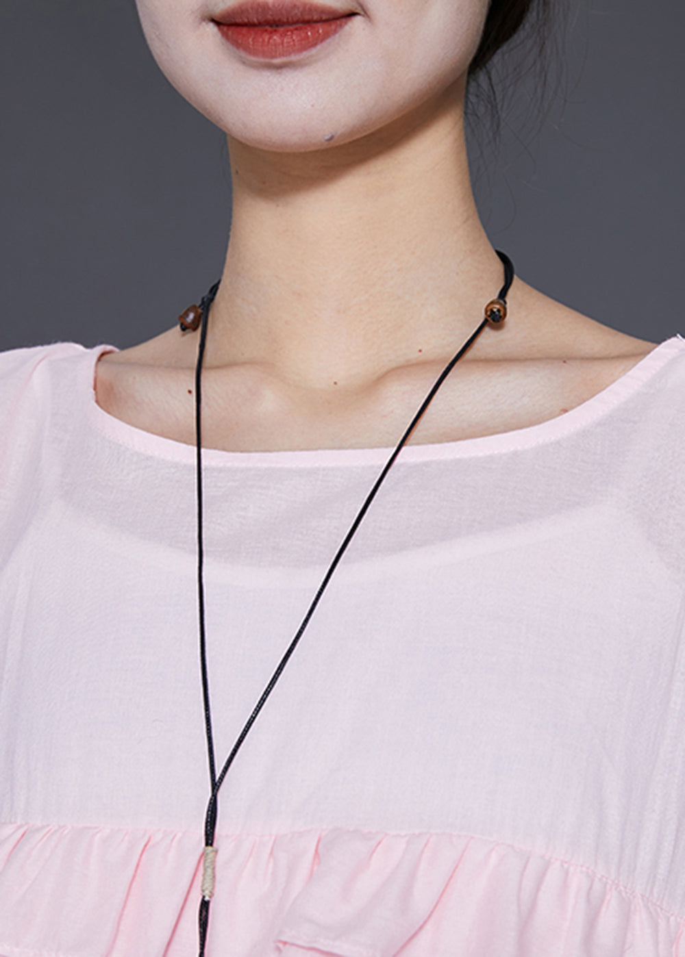 Natural Pink Ruffled Patchwork Linen Robe Dresses Batwing Sleeve