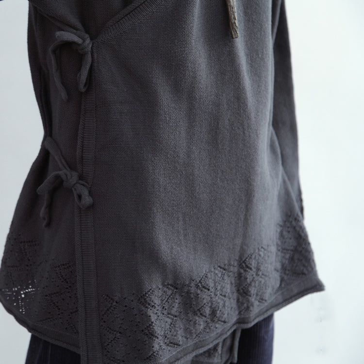 navy vitage cotton sweater cardigans plus size hem hollow out knit coats