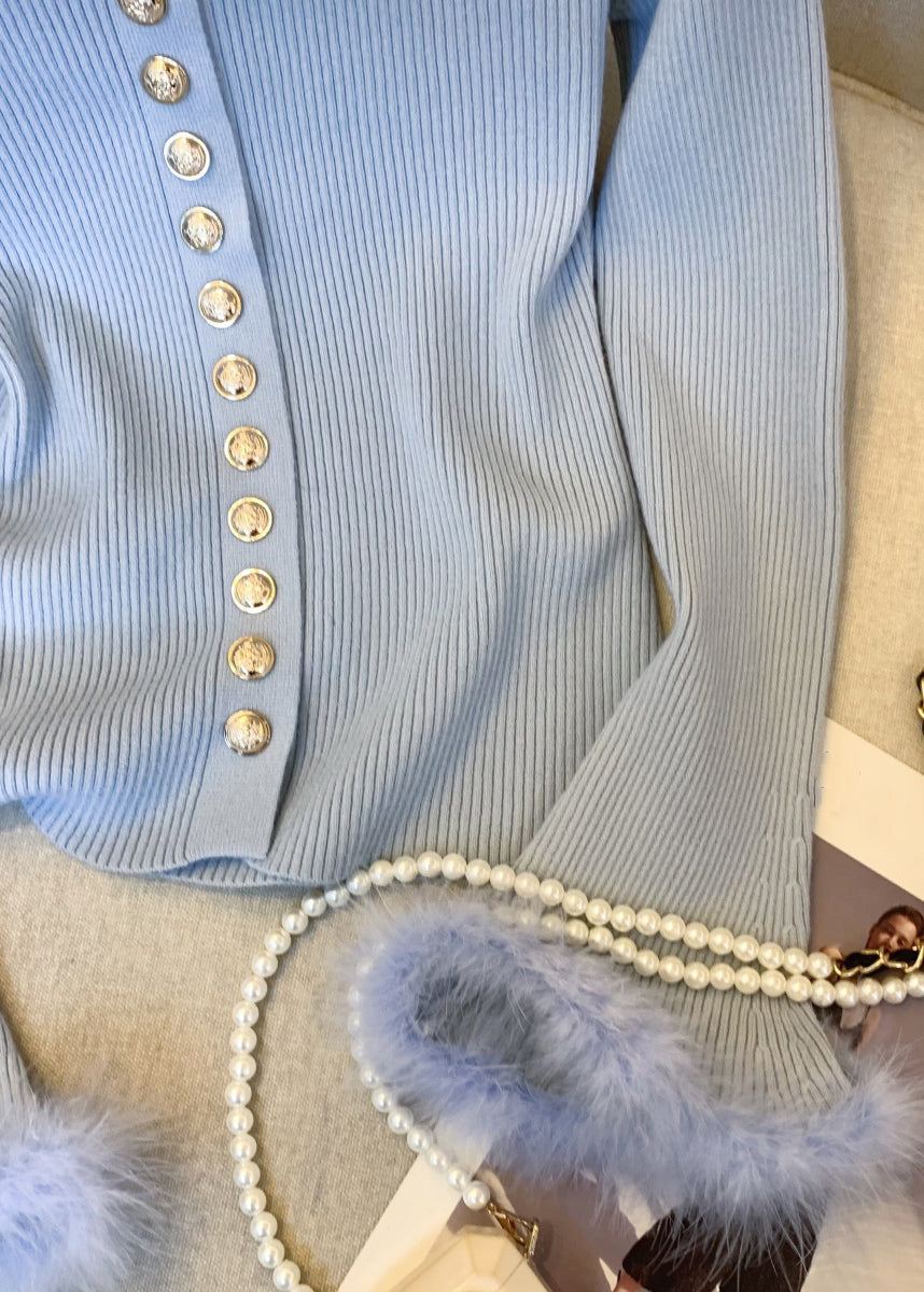 New Blue O Neck Cozy Patchwork Knit Sweater Tops Winter