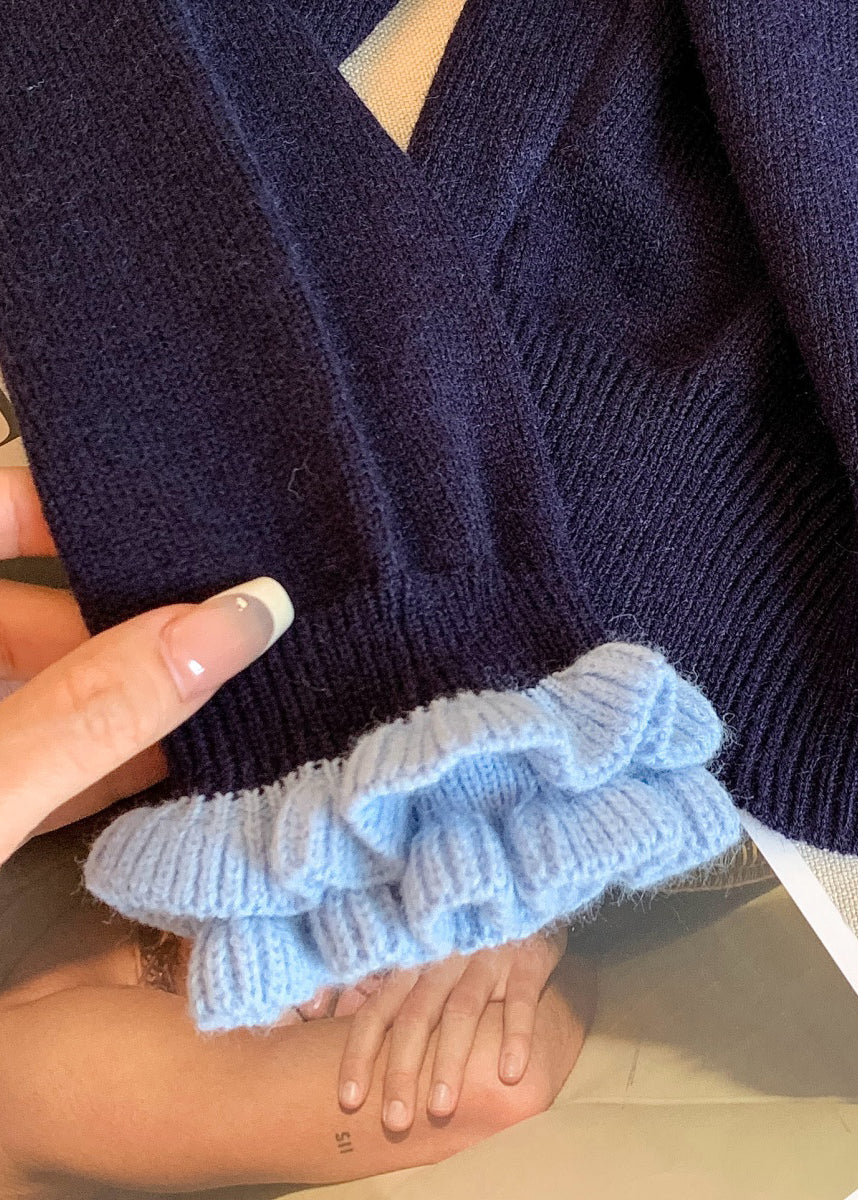 New Navy Original Design Patchwork Knit Coats Petal Sleeve