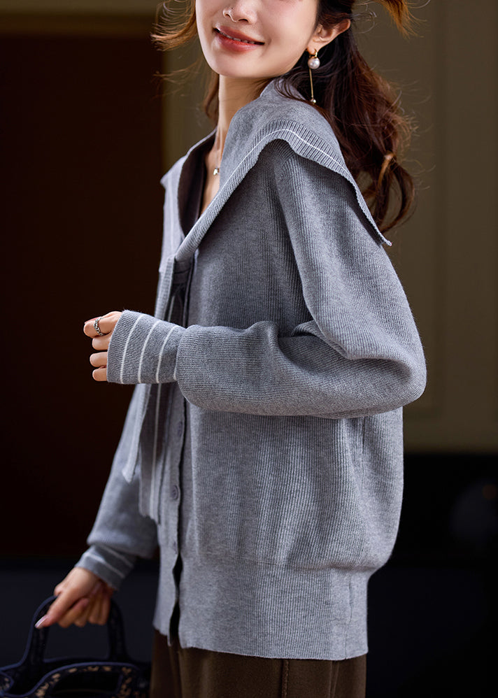 New Navy Sailor Collar Button Knit Sweater Spring