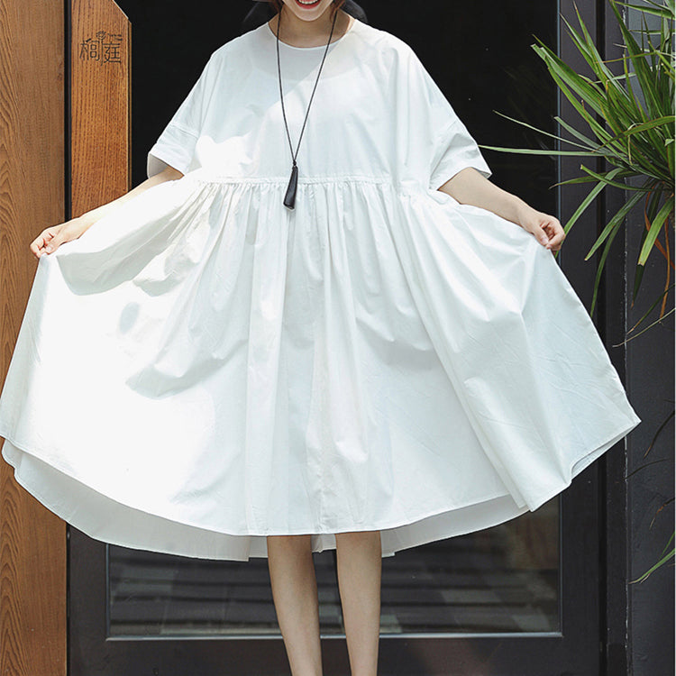 New white cotton maxi dress casual O neck baggy dresses Elegant short sleeve large hem dresses