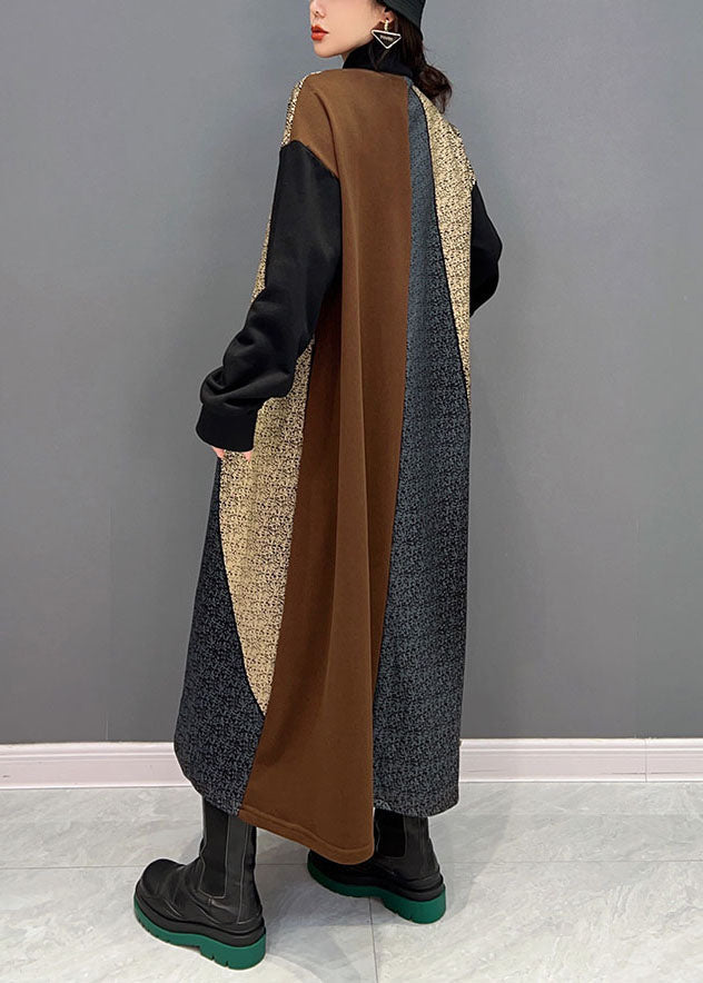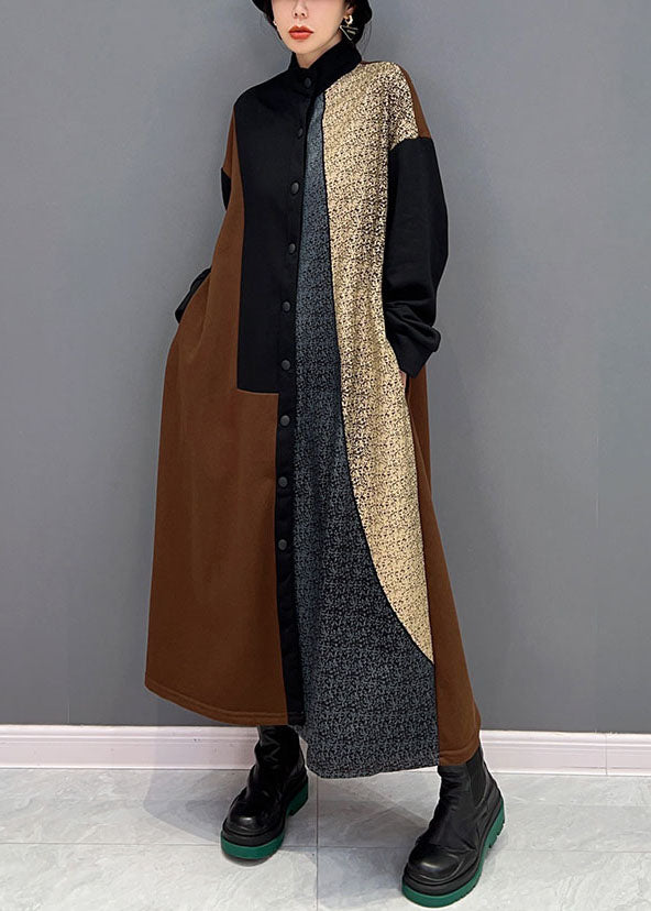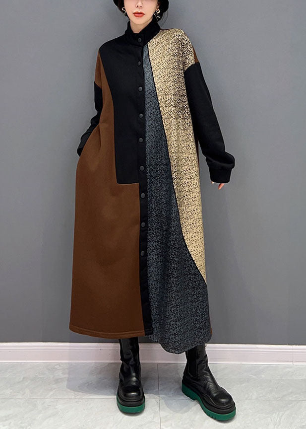 Original Design Colorblock Stand Collar Patchwork Cotton Shirt Dress Spring