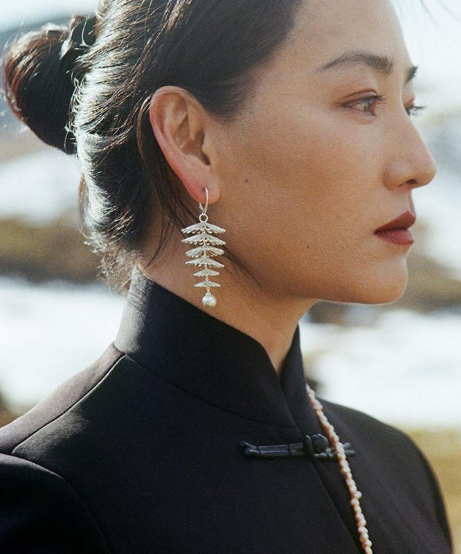 Oversize Silk Sterling Silver Pearl Tree Drop Earrings