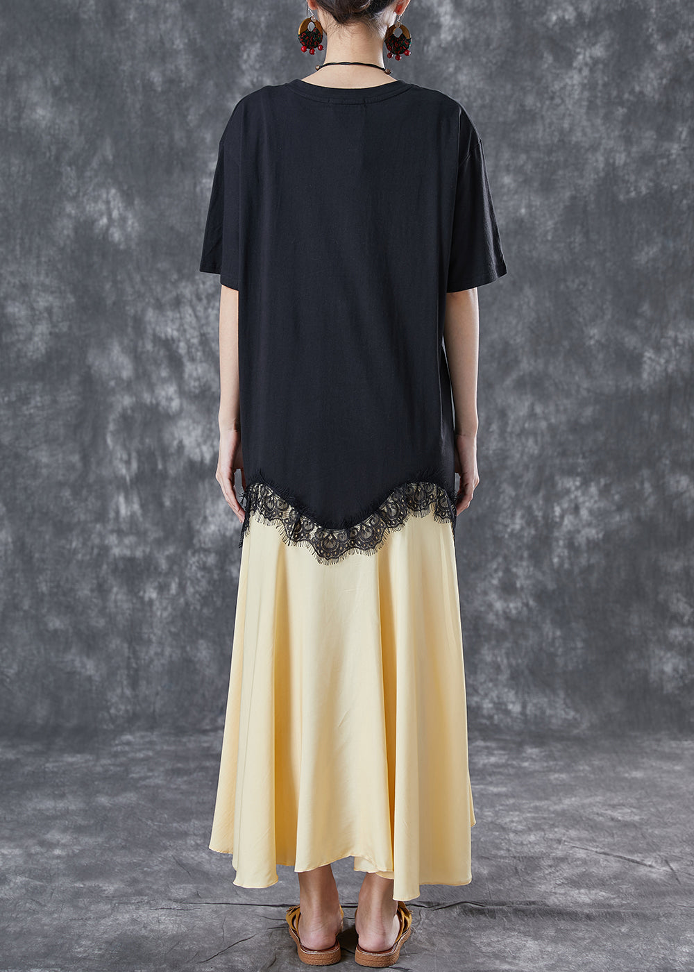 Plus Size Black Asymmetrical Patchwork Cotton Fake Two Piece Dresses Summer