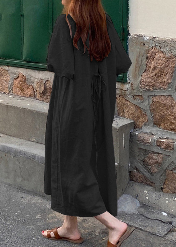 Plus Size Blue O-Neck Patchwork Tie Waist Long Dress Short Sleeve