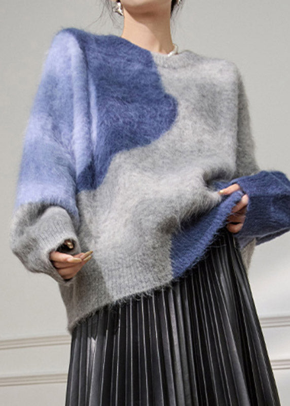Plus Size Colorblock Patchwork Cozy Cotton Knit Sweater Tops Spring