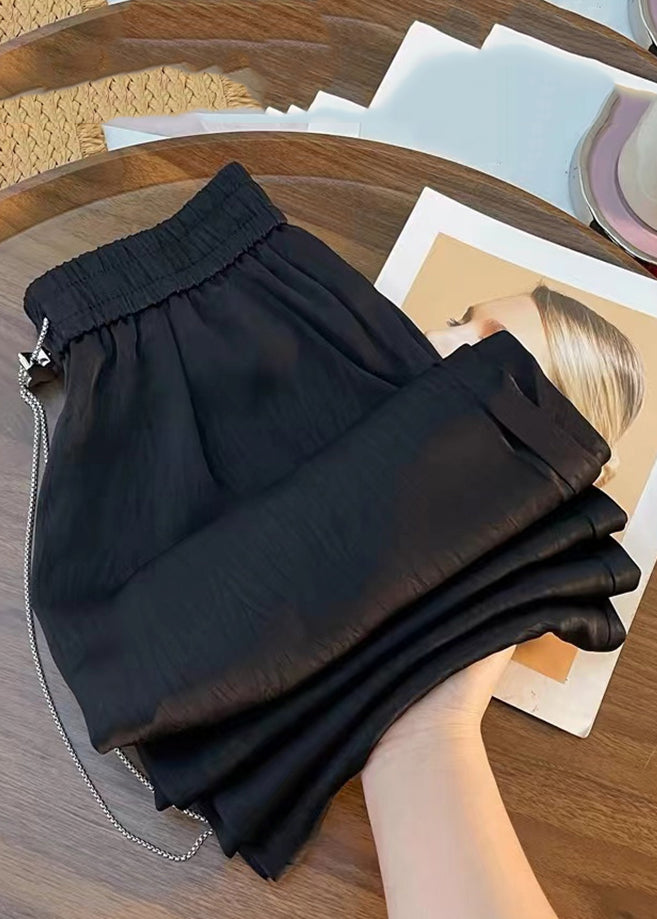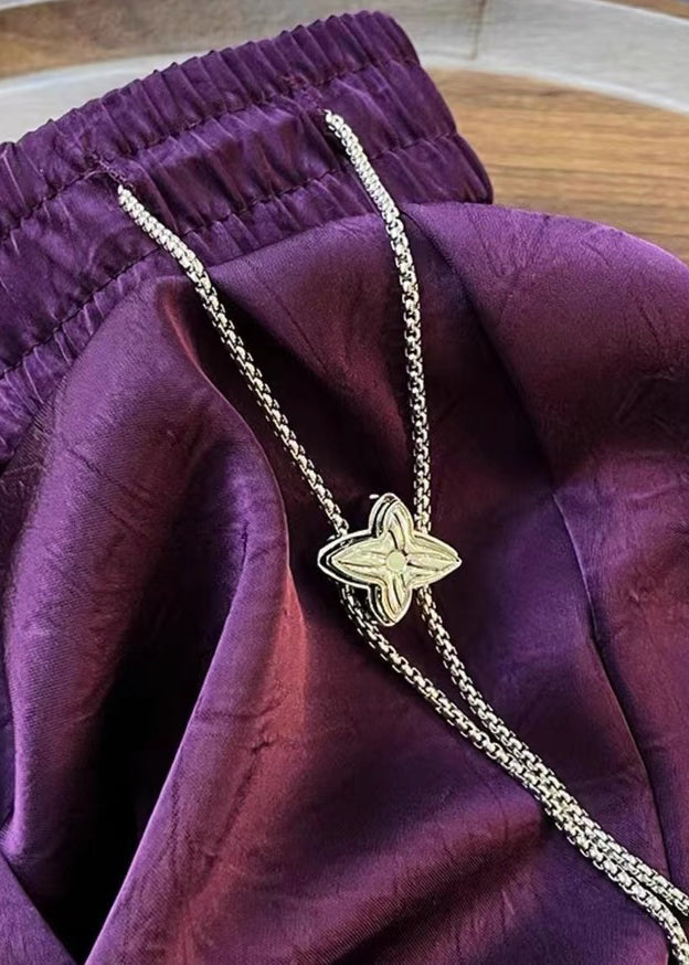Plus Size Purple Print Elastic Waist Silk Cotton Wide Leg Pants Fall