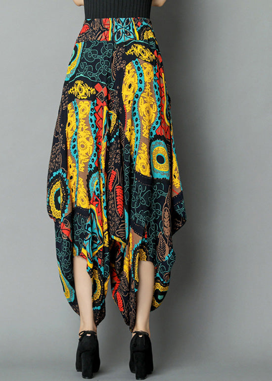 Plus Size Yellow Pockets Print Elastic Waist Crop Pants Summer