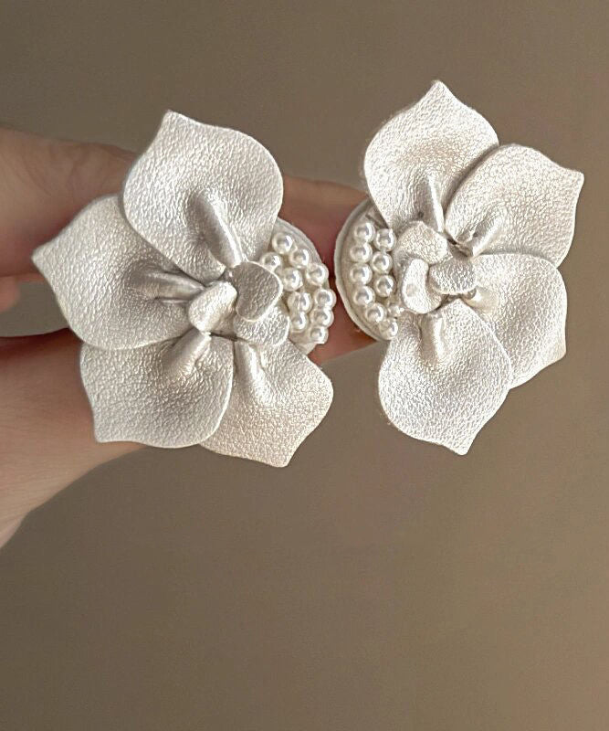 Regular Red Faux Leather Pearl Jasmine Stud Earrings