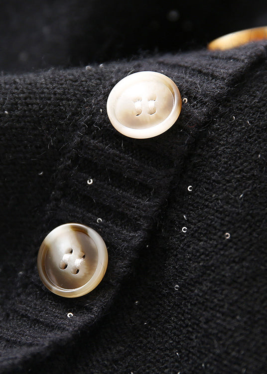 Silm Fit Black Turtle Neck Sequins Button Knit Dress Winter