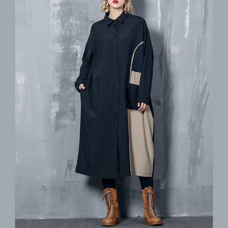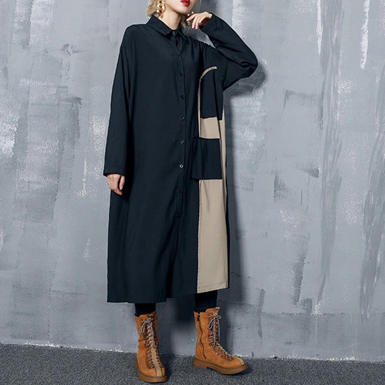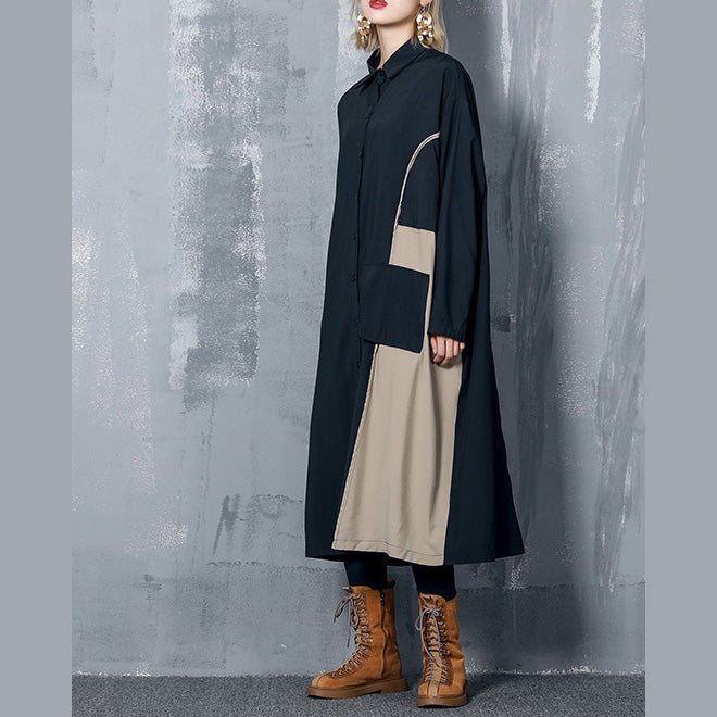 Simple black cotton tunic top 2025 Shape patchwork A Line Dresses