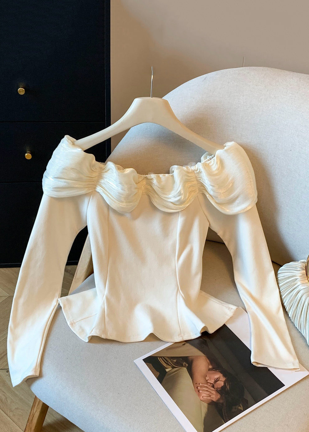 Slim Fit Apricot Floral Wrinkled Patchwork Cotton T Shirt