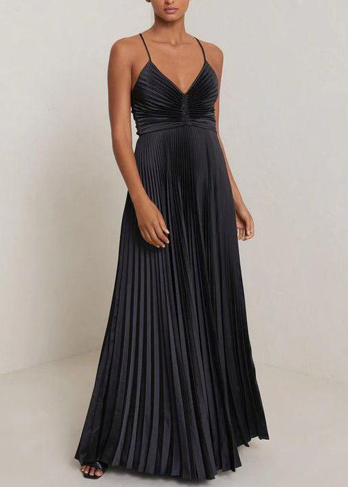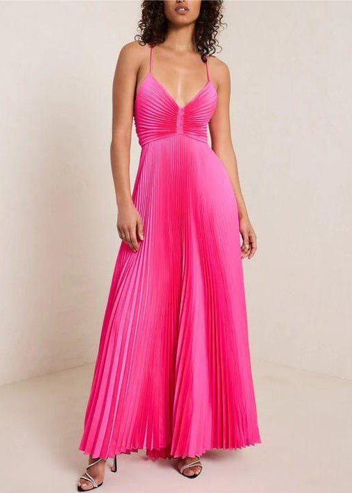 Slim Fit Yellow V Neck Wrinkled Cotton Spaghetti Strap Dress Sleeveless