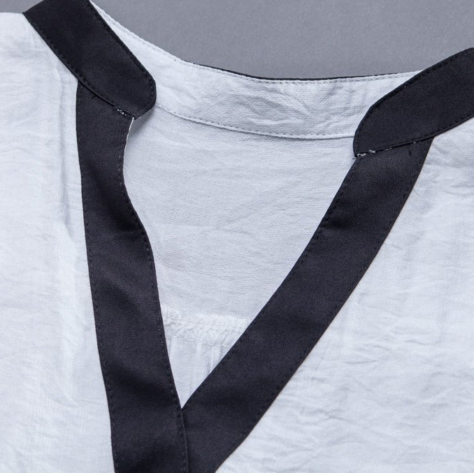 Style linen cotton quilting clothes Pakistani White Long Sleeve Loose Irregular Dress