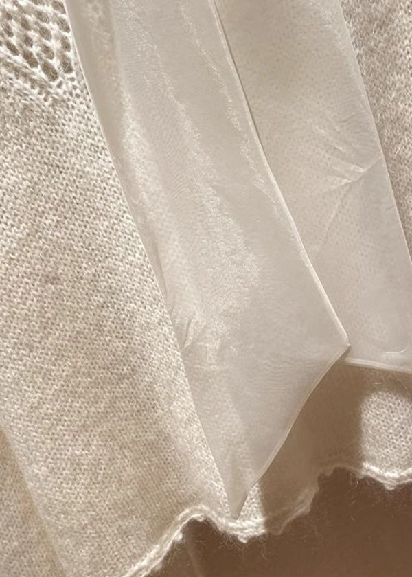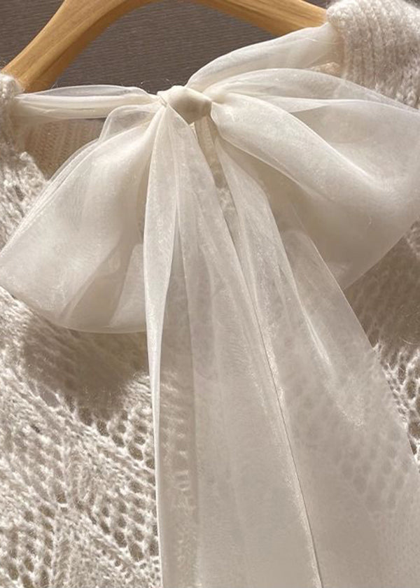 Style White Hollow Out Lace Up Knit Sweaters Spring
