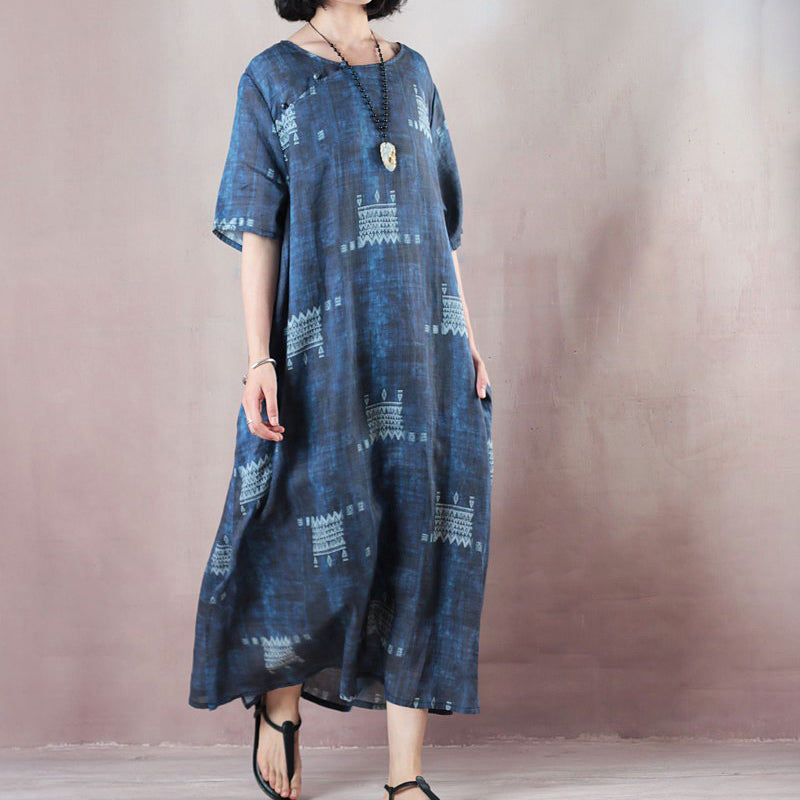 stylish blue linen dresses trendy plus size o neck Extra large hem caftans 2018 short sleeve baggy dresses caftans