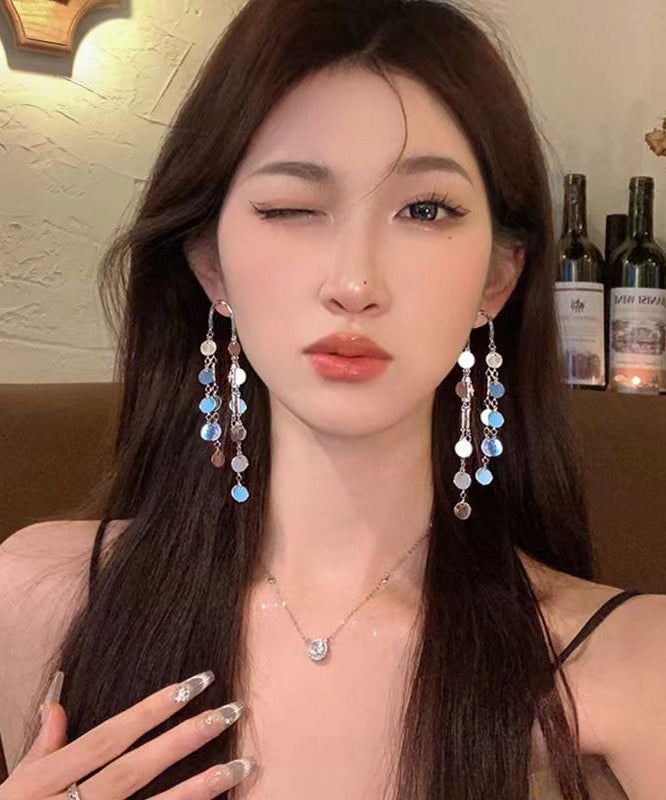 Stylish Silk Copper Alloy Sequins Tassel Drop Earrings