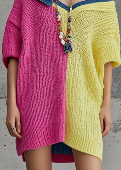Unique Colorblock Oversized Patchwork Denim Knit Dress Fall