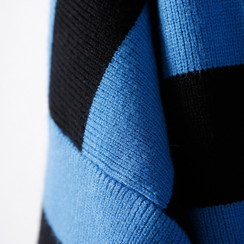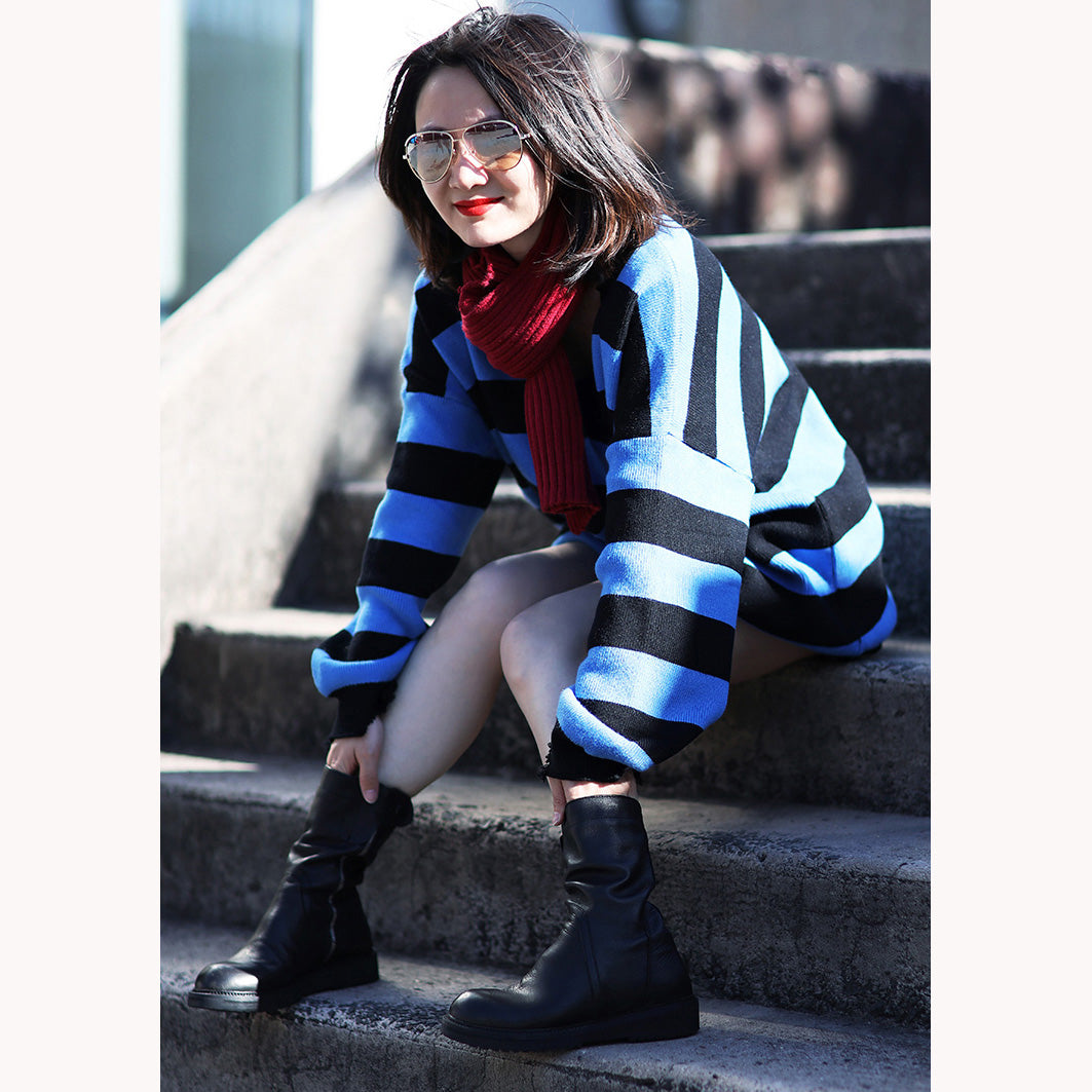 Unique cotton tunic pattern top quality v neck Catwalk blue striped box knit tops spring