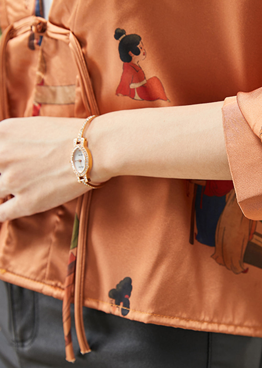 Unique Orange Tasseled Print Silk Cardigans Spring