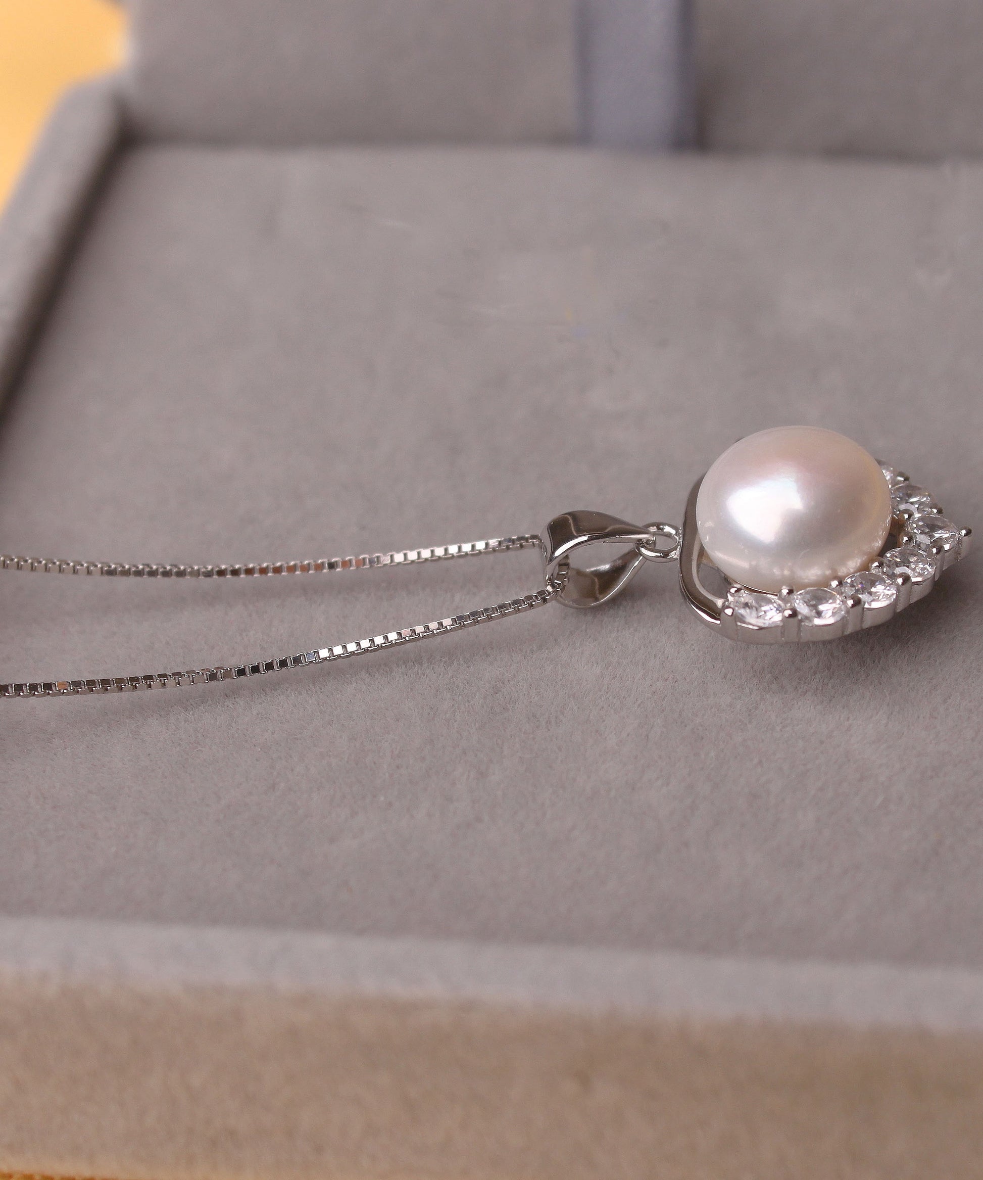 Unique Purple Sterling Silver Zircon Pearl Pendant Necklace