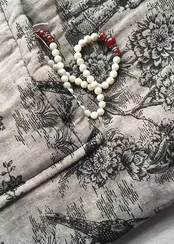 Vintage Apricot Oversized Print Fine Cotton Filled Long Coats Winter