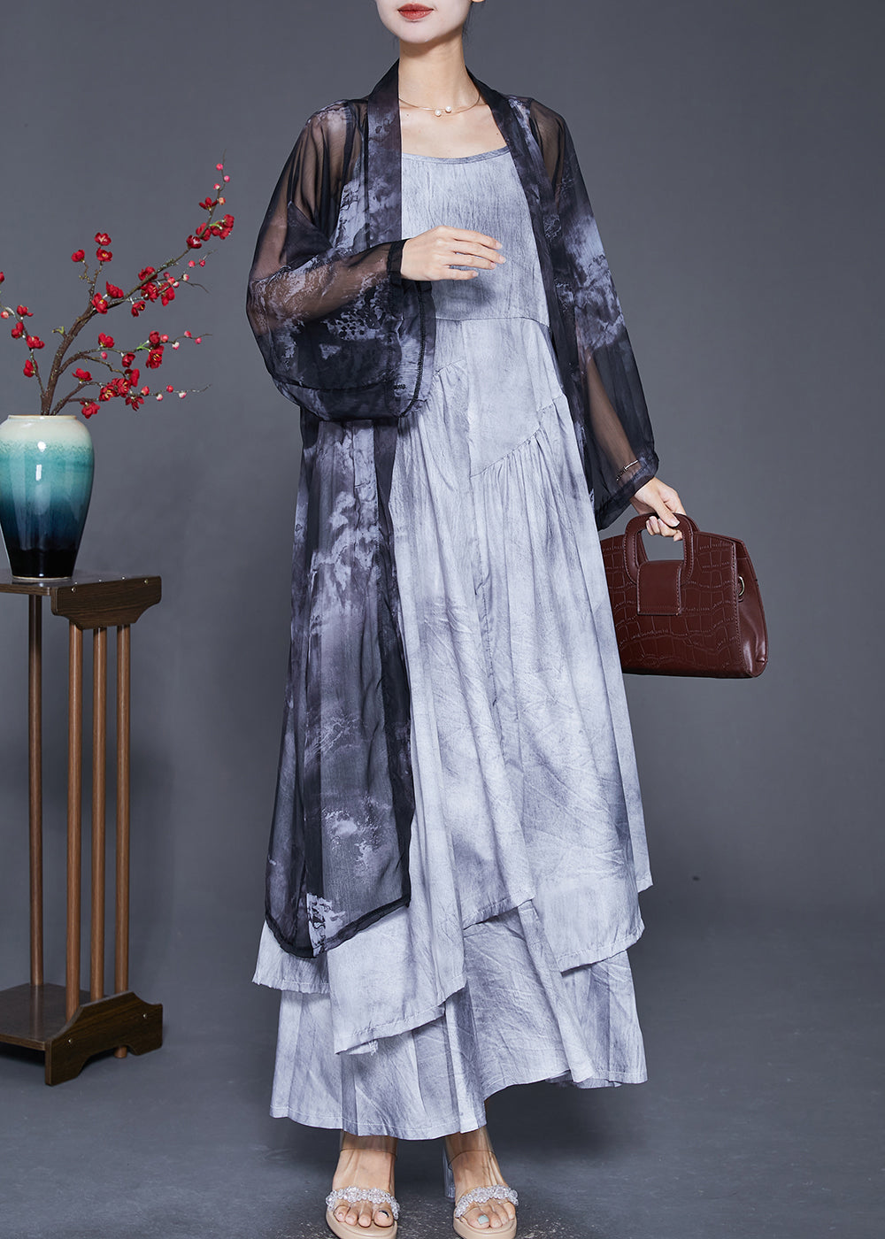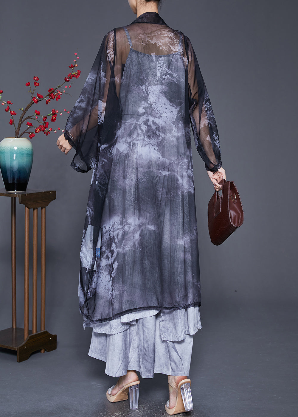 Vintage Black Oversized Tie Dye Chiffon Cardigans Summer
